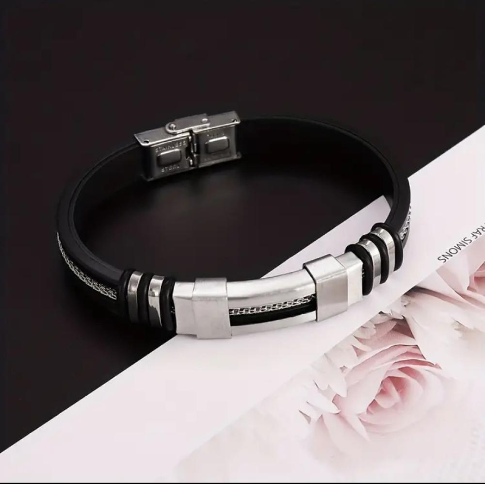 سوار يد رجالي مصنوع من السيليكون والفولاذ المقاوم للصدأ يجمع بين الأناقة والمتانة و يتميز بتصميم عصري بنمط هوب مما يجعله خيارًا مثاليًا للرجال الذين يبحثون عن إكسسوار يجمع بين الجمالية والوظائف العملية استمتع به الان من Ashimonde