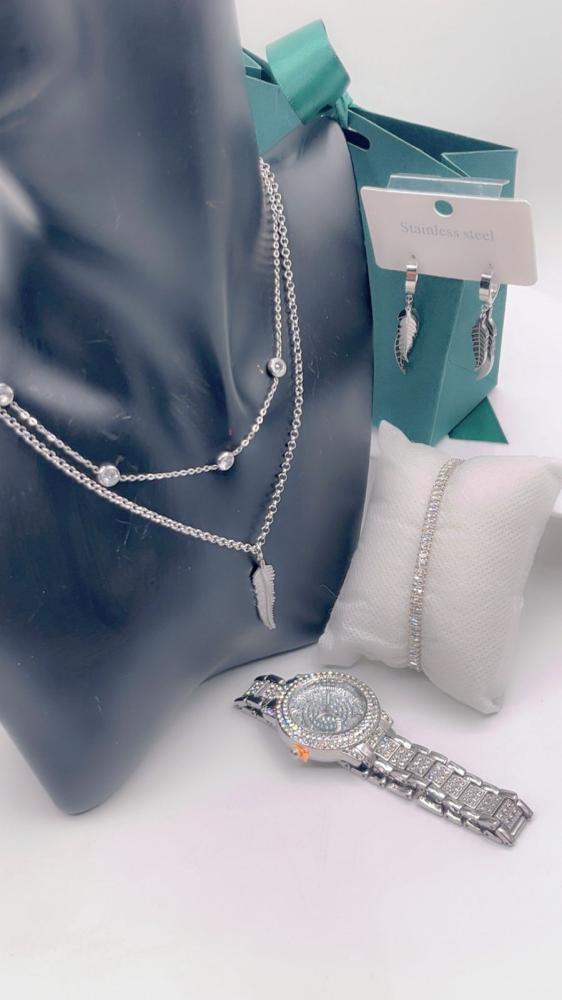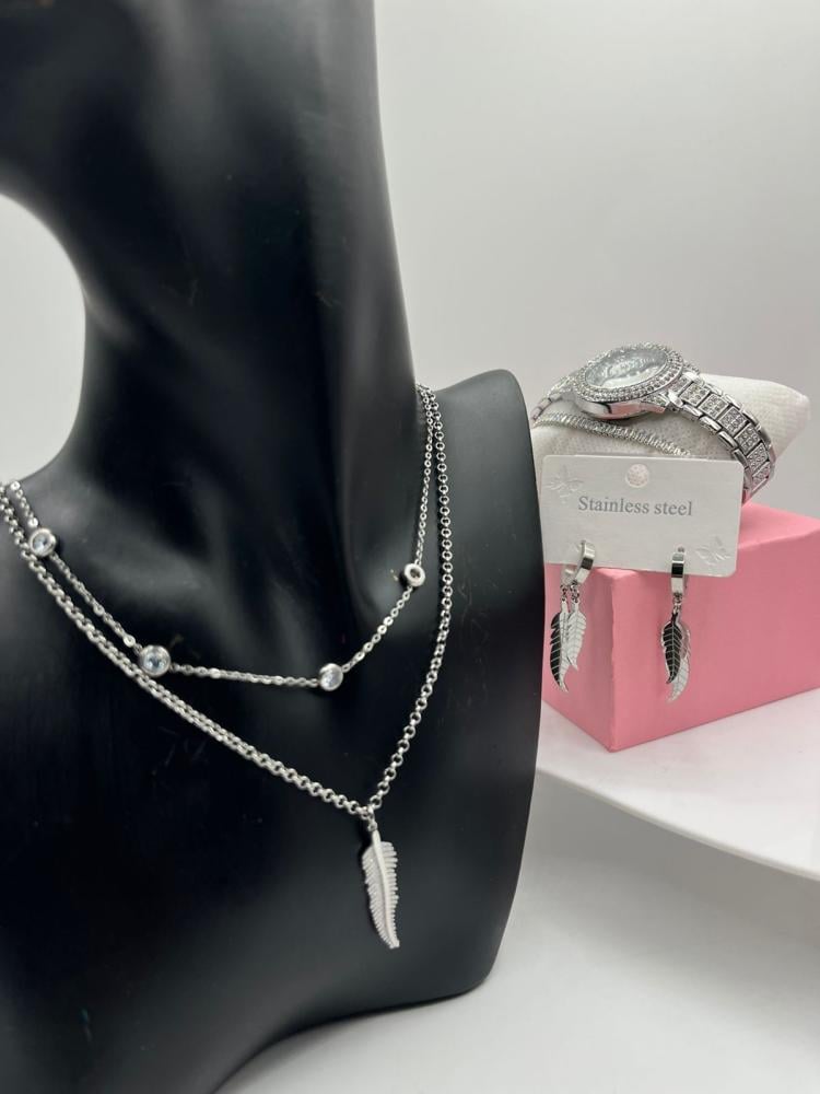 . حلق نسائي فاخر لون فضي من معدن الستانلس استيل المقاوم للصدا