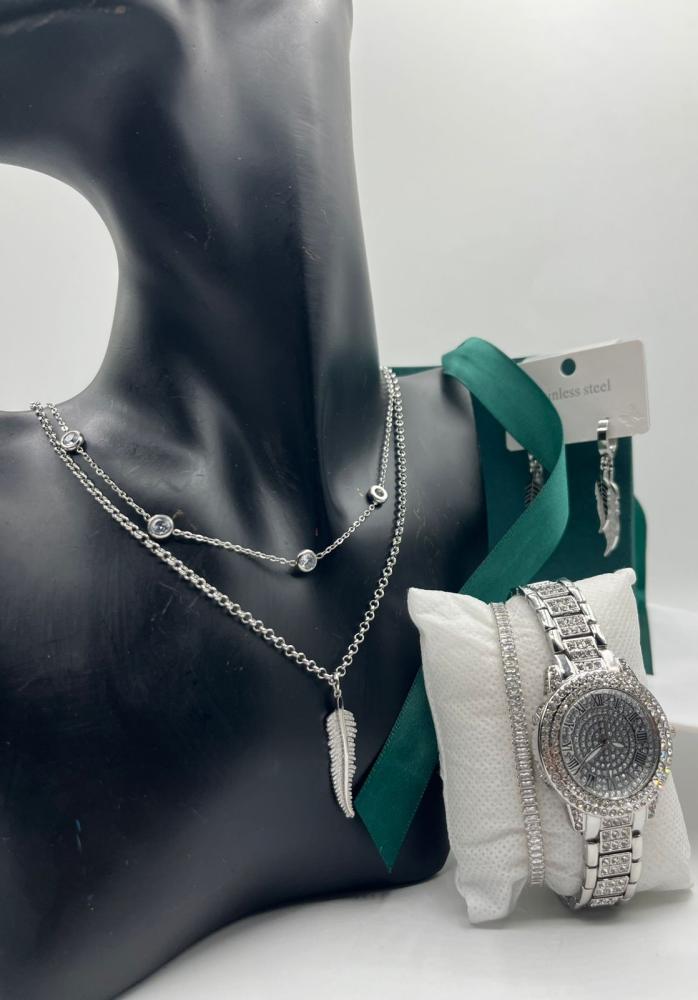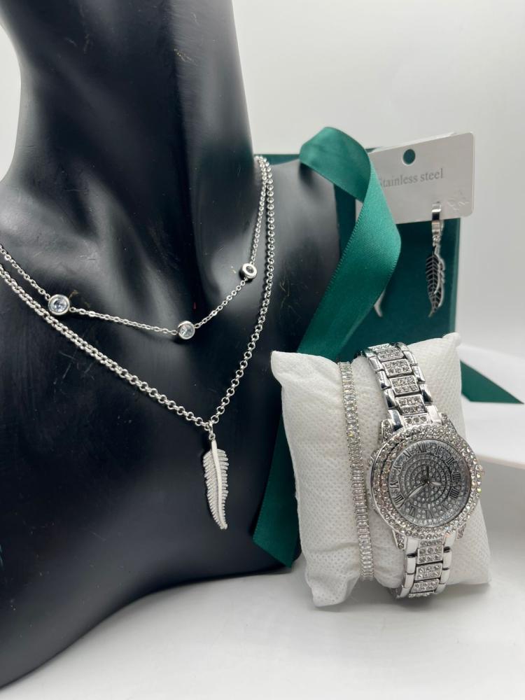 . ساعة مناسبات نسائية لون فضي مرصعه بالكريستال